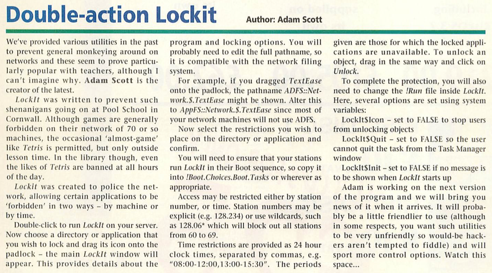 LockIt utility featured in *INFO section