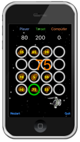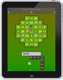 To place a flag, you must use the dice and your calculator skills to create a number that’s on the board.  The game can be restricted to a limited number of turns, you can change the difficulty level of the computer player, and you can choose whether ‘brackets’ and ‘to the power of’ are available on the calculator.
